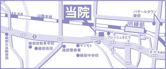 JR山陰線 「綾部駅南口」下車 府道8号線を福知山方面へ徒歩約7分