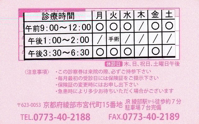 駐車場:計7台(診療所の東となりと三叉路交差点の向かいにあります。)